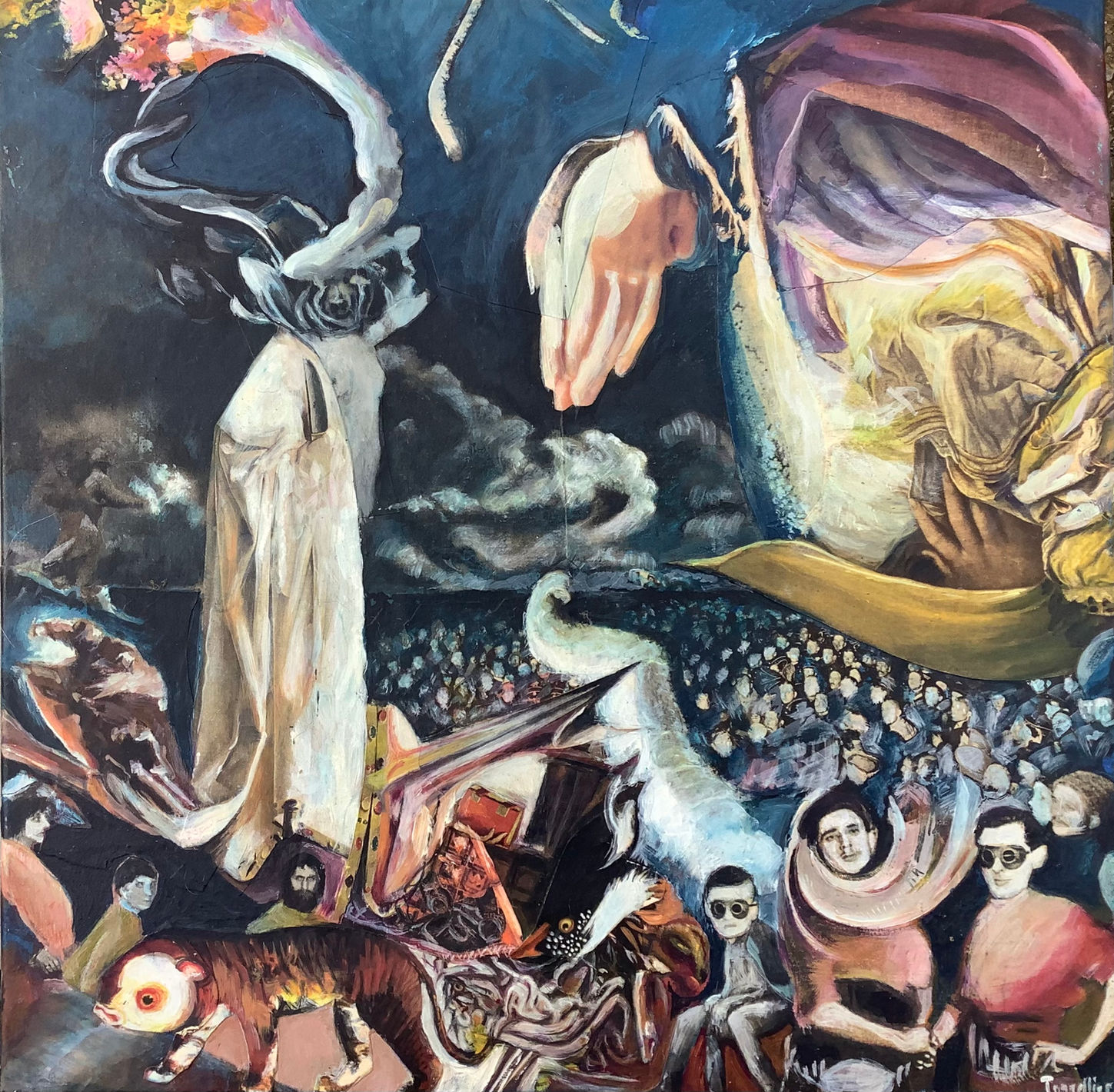Strongly influenced in her youth by the Old Masters, initiated by her father, an enthusiast copyist, and by extra-curricular courses at the Louvre from the age of 8 to 13, she developed her pictorial research through the association of timeless images, which reveal the chaos of our world permeated by invisible forces.