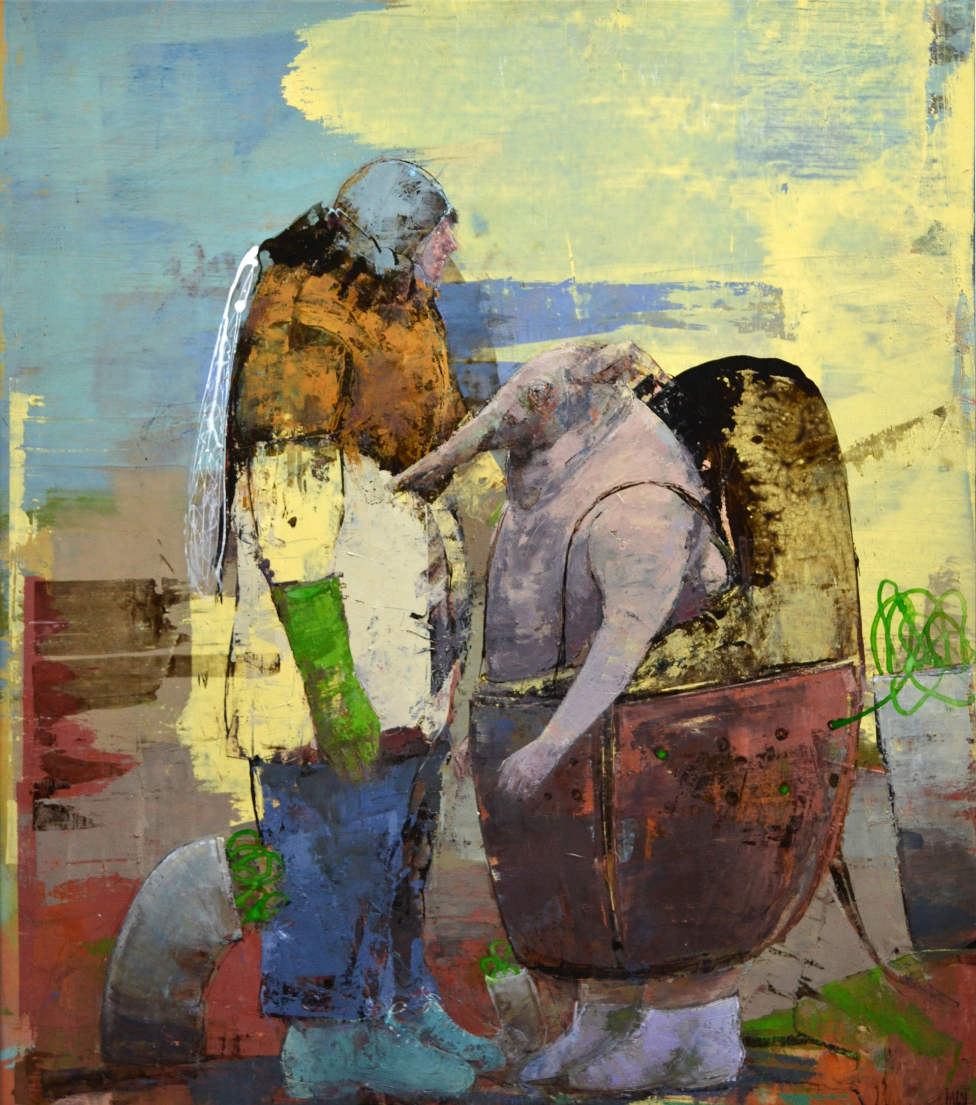 Their oneiric horizons or perspectives are born of soft colours with an often chiselled texture; this newly-initiated Territory is then populated by human ‘figures’, striking creatures, unusual animals, beings with ‘ otherly’ faces; lastly, are ‘set’ the details or objects of Lives implied rather than said.